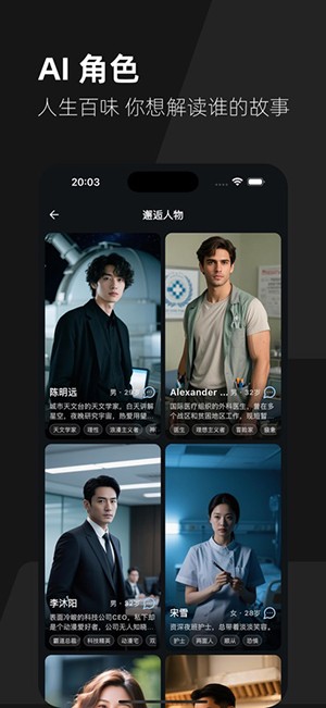 2. 可与性格鲜明的虚拟角色深入对话,逐步解锁他们的专属剧情。