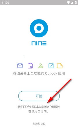 1. 下载安装Nine后打开应用,进入首页点击【开始】,即可进入邮箱配置流程。
