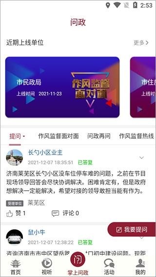 3、点击掌上问政功能模块,这里可以进行提问、评论等;
