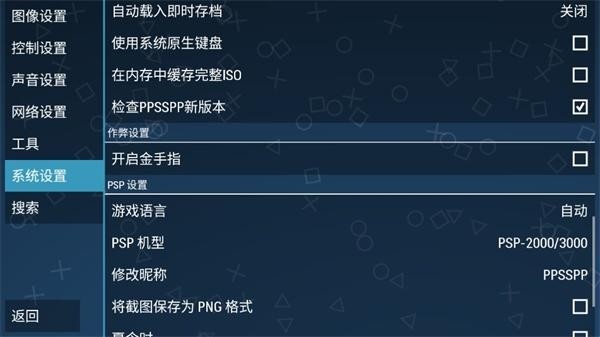 1、打开Ppsspp模拟器最新版本,依次点击游戏设置--系统设置--开启金手指(打勾)。