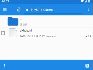 3、然后到文件管理器/Psp/Cheats看到一个Ini文件,这就是刚刚运行游戏的金手指配置文件,点击打开这个文件