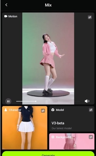 2、选择动作模板:Viggle AI提供多种动态效果,如跳舞、行走、挥手等,一键应用。