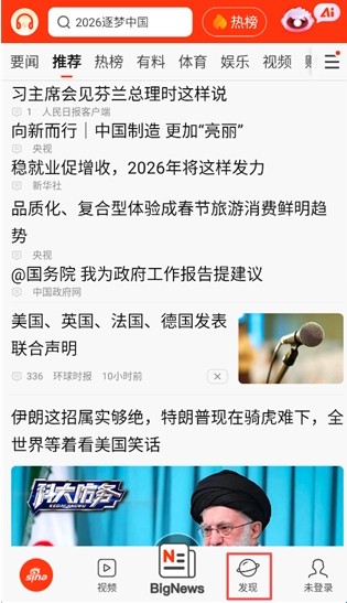1、打开新浪新闻App,点击底部发现,进入发现页面。