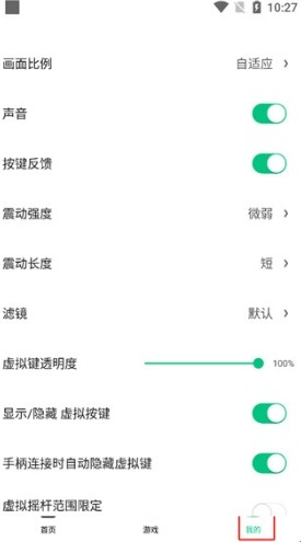 自定义调节画面比例、声音、震动强度、显示或隐藏虚拟按键等等。