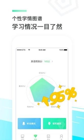 e听说中学app官方版,专为中学生设计的英语学习软件,提供模拟测试题库,口语训练及在线评分功能,助力学生查漏补缺,提升英语水平。
