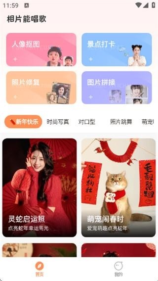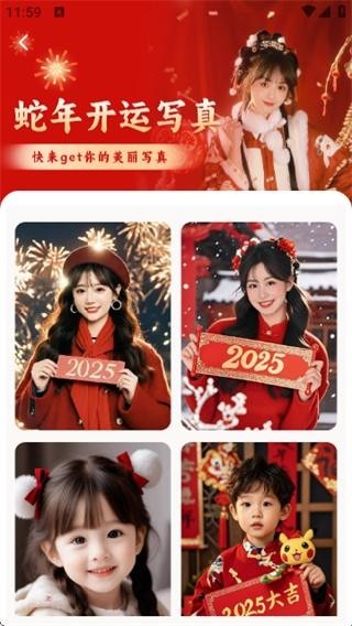 1、打开APP,在首页点击时尚写真的分类,然后选择蛇年开运写真模板进入;