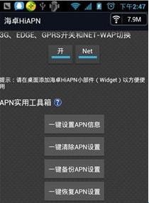1、一键设置网络(内含中国大陆,香港,台湾和韩国的运营商信息)。一键备份、一键恢复、一键删除APN信息,适合刚接触Android手机和经常刷机的朋友。