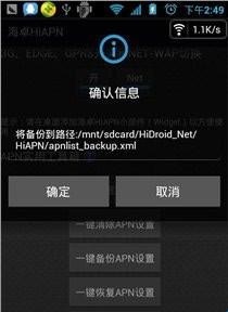 4、第二项,一键清除APN设置,会把之前所有的APN设置(手动以及海卓一键设置)清除,请慎用。如果你想保留之前的APN信息,先到第三项一键备份APN,把设置备份到SD卡,以便通过第四项一键恢复APN设置