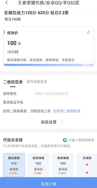 发布订单,代练接单,完成订单,一键代练操作简单