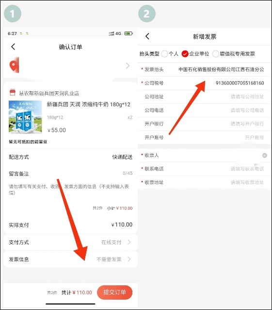 3、为便于后期统计消费帮扶情况,提交订单时,请务必选择发票信息,新增发票,填写单位和个人相关信息