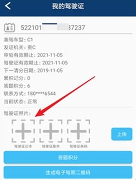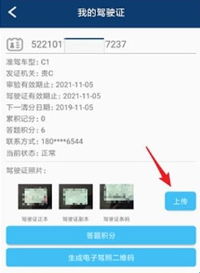 9、接着,返回到“我的驾驶证”页面,点击“上传”。