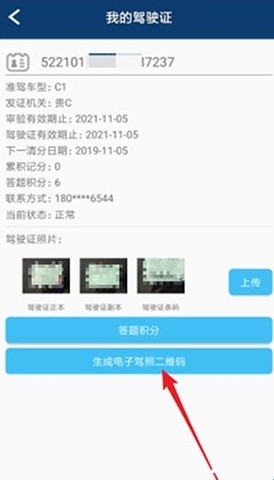 10、上传成功后,即可点击“生成电子驾照二维码”。