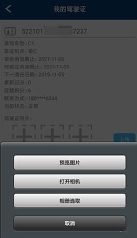 4、然后在弹出的悬浮菜单中,选择其中的一种添加照片的方式,如打开相机现照,或者相册选取已经照好的驾驶证照片。
