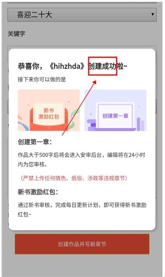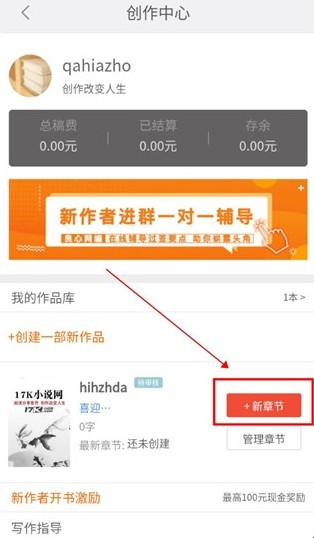 6、在然后就是重新进入创作中心,点击编写新章节;