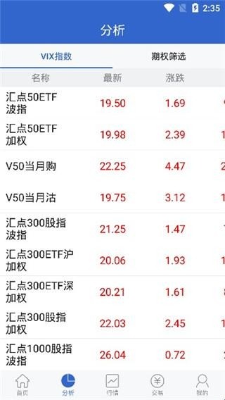 3、在“分析”中,包括:vix指数以及期权筛选。