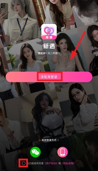 2、进入登录界面,勾选我已阅读并同意《用户协议》和《隐私政策》,可以选择手机号登录使用手机号,验证码进行登录,以及点击微信图标使用微信账号授权登录