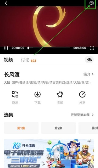 点击右上角的投屏功能;