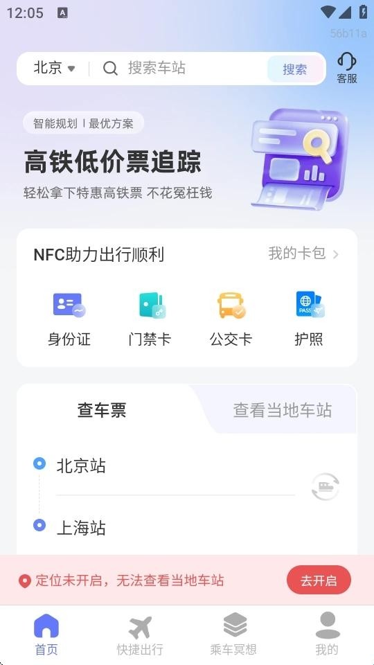 高铁低价票追踪app,提供实时车票查询服务,一键掌握站点、票价信息。智能起售助手,输入地点日期,轻松追踪低价票。支持NFC读卡,让出行更便捷。