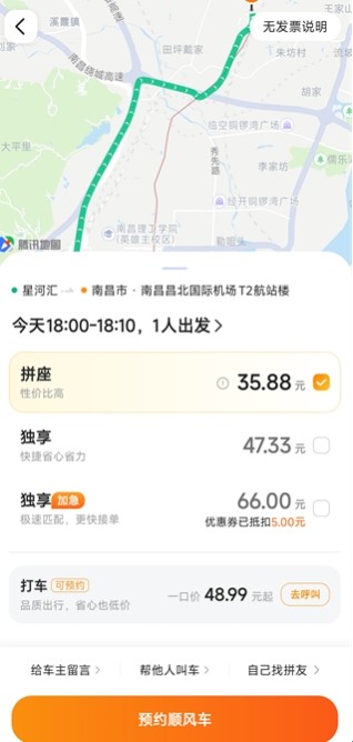 4、系统会显示顺风车报价,点击“确认预约”即可。接下来,等待司机接单并前来接你。