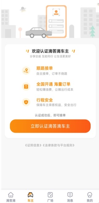 6、在车主认证引导页,了解顺风车的接单优势,如顺路接单、全国范围订单和行程安全等。完成认证后,即可开始接单,享受更多机会。