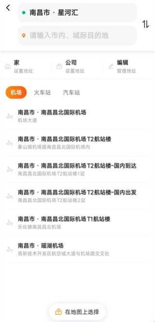 登录滴答顺风车app后,系统会自动定位到当前位置,您可以使用该地址作为上车地点;或者移动地图上的图钉到指定位置,设为上车地点;然后选择下车地点。