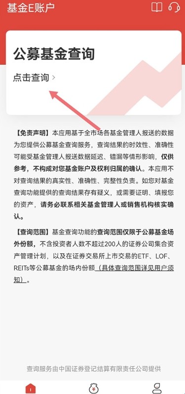 1、首先打开基金E账户App后完成注册登录,然后进入首页点击查询
