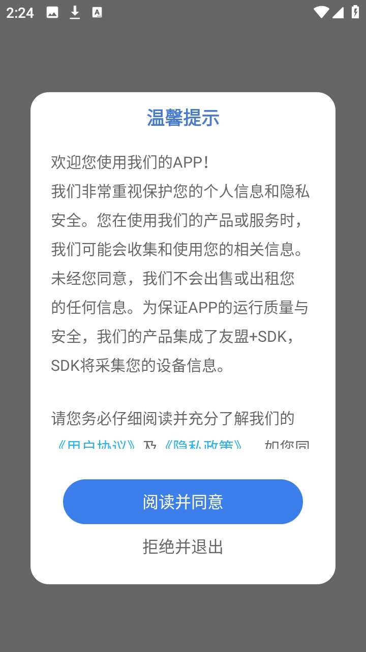 1、点击同意隐私协议进入软件。