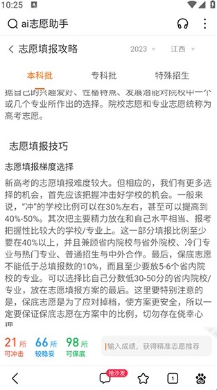 4、预测完毕后可以点击【志愿填报攻略】来查看