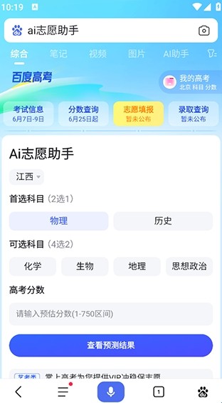 百度AI志愿助手也叫Baidu,这是一款非常强大的手机浏览器软件,专为高考考生打造的软件。用户可以在这里输入自己的分数,然后就可以看见全球各地的大学基本信息和推荐专业,让你不再因为选大学而烦恼。而且软件还邀请了各大名师前来演讲,帮助你更好的选择心仪的院校!