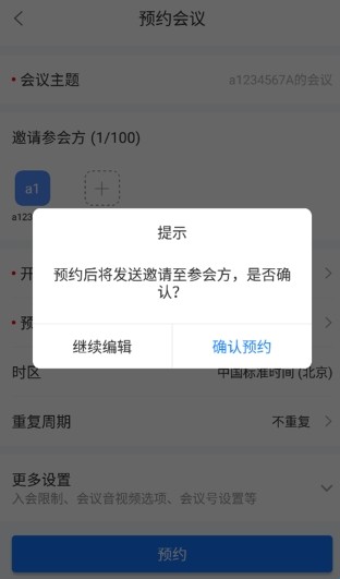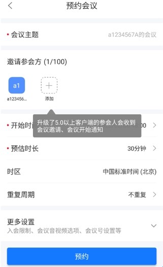 2、选择参会方,选择开始时间和预估时间;