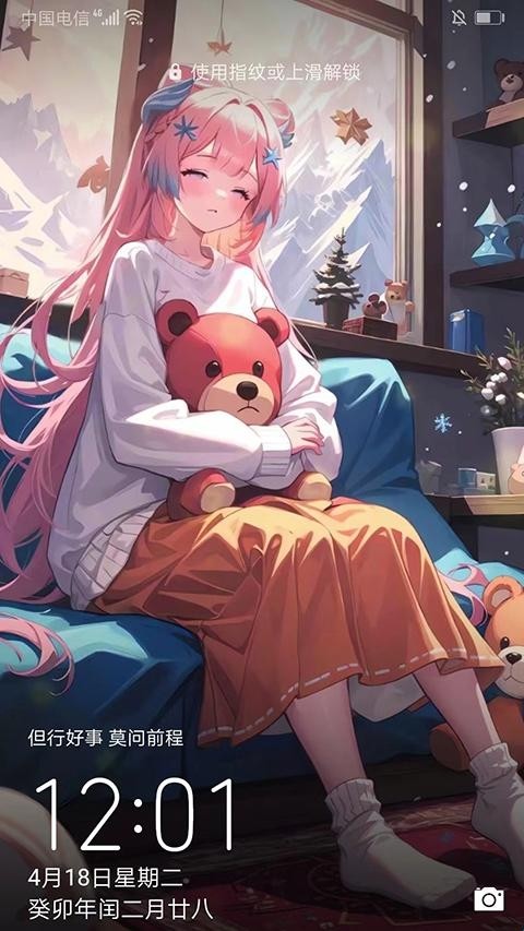 5、按下锁屏键,如图,可看到已经成功将壁纸设置为锁屏了,以上就是元气动态壁纸怎么设置锁屏的方法了。