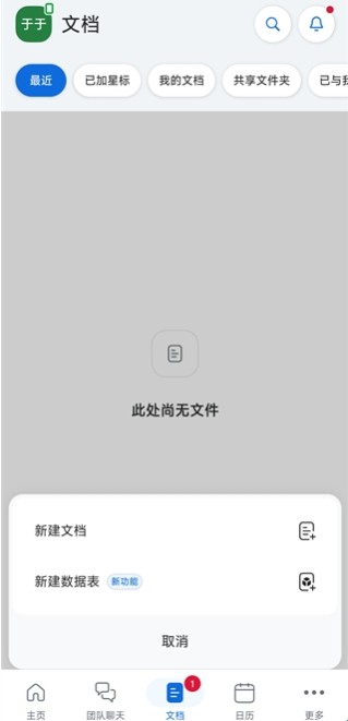 【文档】支持查看最近文件,点【+】可新建文档/数据表。