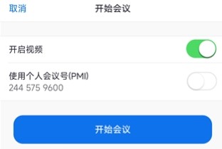 主界面可选择【开启视频】【使用个人会议号(PMI)】,点击蓝色按钮启动会议。