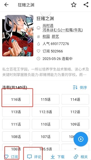 3、找到了之后,点击章节也可以点击订阅或者发送评论和其他人一起探讨