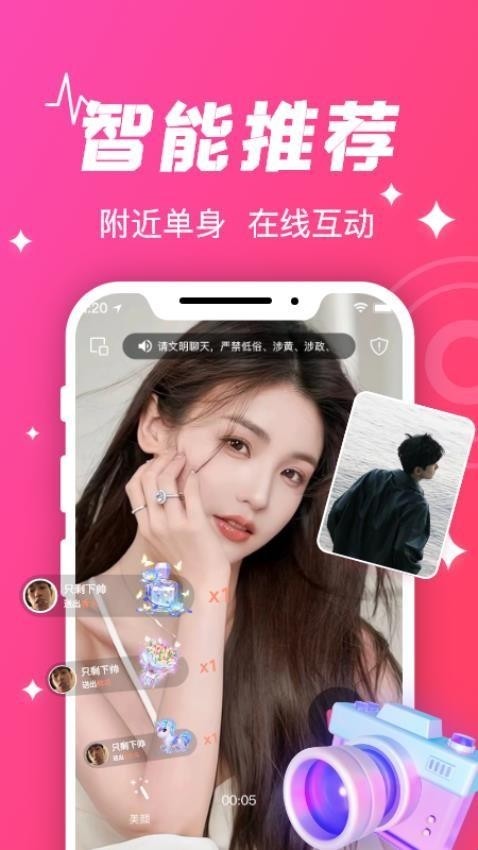 支持视频速配,为用户快速匹配视频对象,进行高效的视频聊天交友。