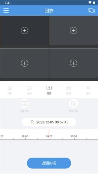 【回放】按钮可查看之前所有的监控画面,还支持调动所有时间段的画面;