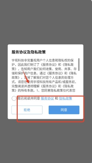 2、启动宇视科技应用,先勾选同意选项并点击确认服务协议。