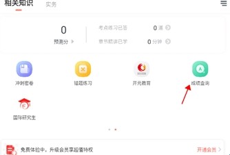 1、打开软件后,在首页将功能部分滑到第二页,点击“成绩查询”