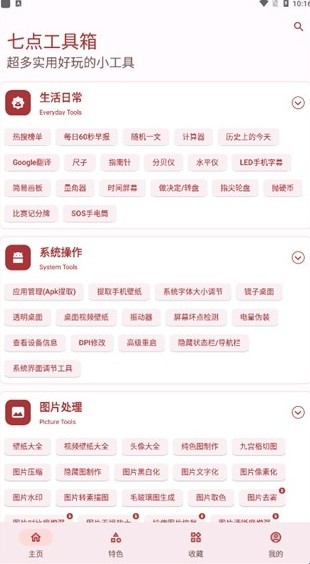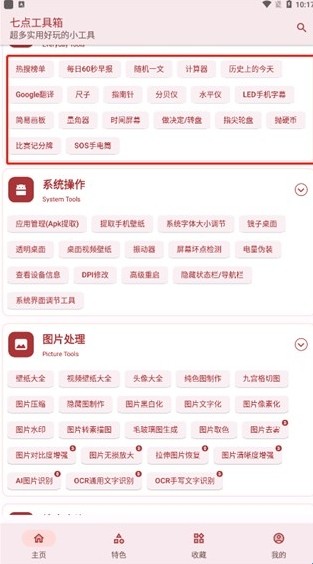 2、涵盖了数学计算、物体测量、图片处理等多个领域。七点工具箱官方版下载集合近百种实用小工具。
