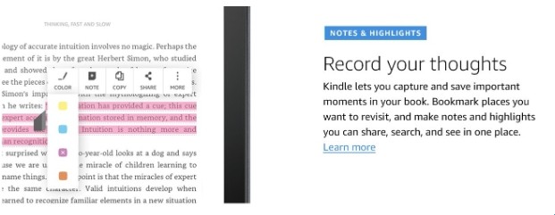 说明:Kindle让您能够捕捉并保存书中重要时刻。您可以标记想要再次阅读的地方,并创建笔记和高亮内容,这些都可以集中在一个地方查看、搜索和分享。