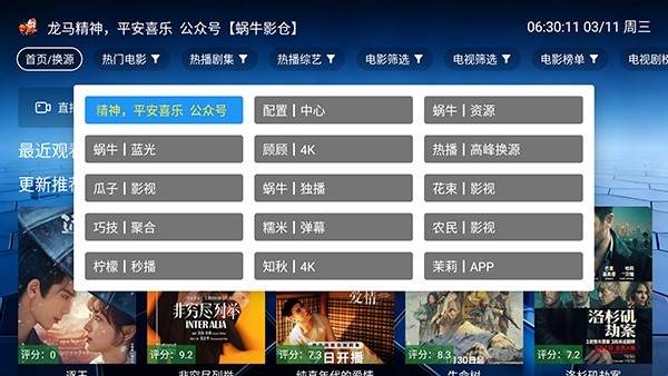 1、软件自带影视源接口无需导入,点击左上角的换源选项可以进行切换。