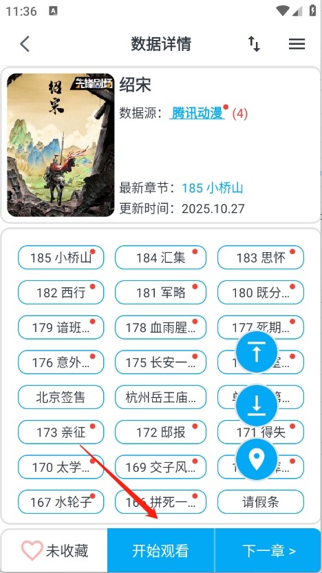 4、点开想看的漫画进入到详情页,点击“开始观看”。