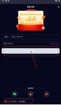 2、在登录/注册页,填写手机号码,点击【发送验证码】,获取并填入验证码。