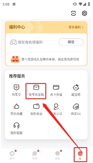 1、打开网易大神APP,选择屏幕右下角【我】页面,选择【帐号百宝箱】选项点击进入;