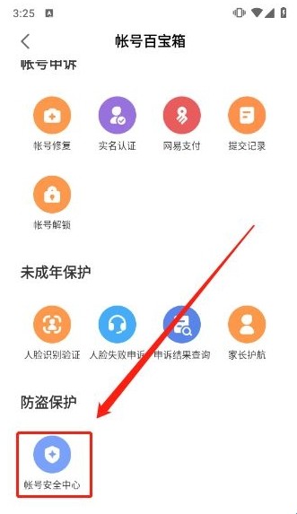 2、在“帐号百宝箱”页面,选择【帐号修复】选项,即可。