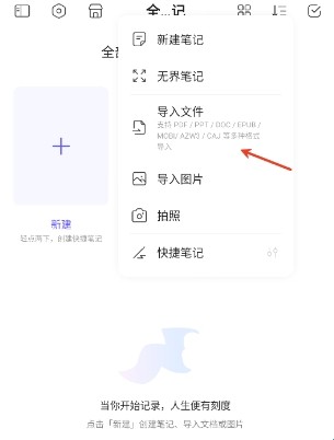 可以通过文件来进行内容导入,通过图片和格式文档来创建笔记内容;