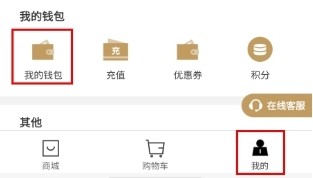1、在我的页面中点击我的钱包按钮;