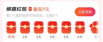 5、每天看2个激励视频可以领取惊喜红包。