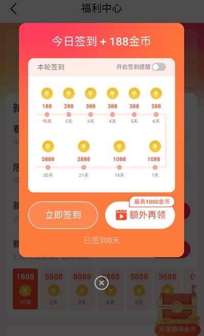 3、新人七天内的登录签到可以领取上千个金币和少量的现金。