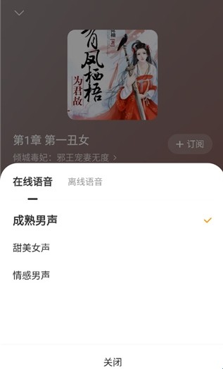 3、进入播放页,点击成熟男音;